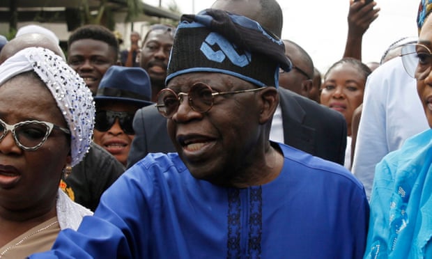 bola tinubu, capres usungan partai penguasa, meraih suara terbanyak di pilpres nigeria. kpu nigeria, rabu (1/3/2023) mengumumkan kandidat dengan slogan kampanye “emi lokan” atau giliranku memenangi pilpres dengan coblosan pada 26 februari 2023/foto via theguardian